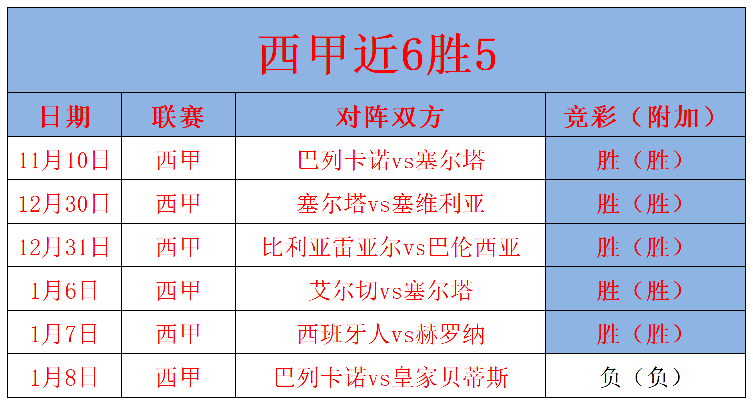 2、近期战绩:近期战绩17胜11,保持稳定,今天分享一场西甲联赛,西甲近期战绩6胜5,胜率高达83%。