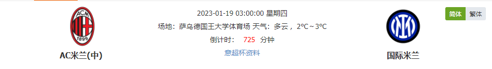 北京时间2023年01月19日03点00分,国际米兰能否抵挡AC米兰的进攻?本场将上演什么激烈画面?