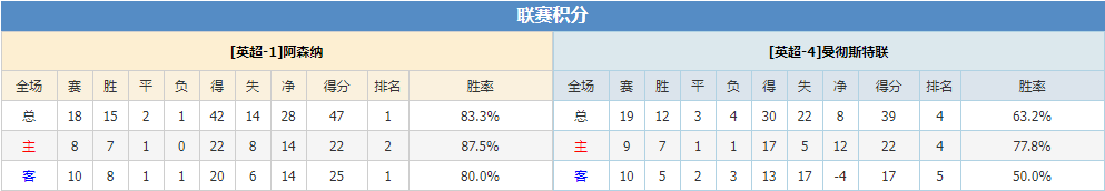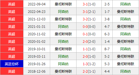 而且,再结合到对赛双方近年来的10次交锋记录也可以看到,阿森纳在面对曼联的时候取得了4胜4平3负的战绩,双方在近年来的交手胜负相当,整体对战还是平分秋色。