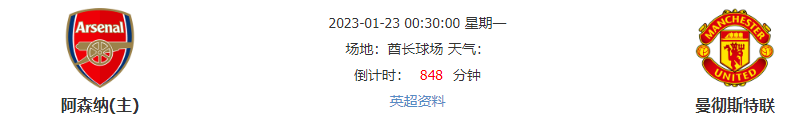 北京时间1月23日的凌晨00点30分,英超赛事的第21轮赛事即将在兔年第一天展开一场看点十足的强强对话——联赛“领头羊”阿森纳将会坐镇酋长球场迎来“红魔”曼联的挑战!近8场各项赛事保持不败的曼联能否延续强势全身而退?还是在本赛季整体状态出色的阿森纳能够借助主场之利,战胜对手巩固榜首领跑的优势?