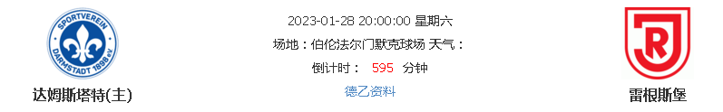 北京时间2023年1月28日20:00,2022-2023 德国乙组联赛,达姆斯塔特vs雷根斯堡,此役是德乙联赛第18轮的较量,主队达姆斯塔特上轮联赛主场1-1战平菲尔特,联赛16轮不败,此役坐镇主场伯伦法尔门默克球场迎战雷根斯堡,两队如何对峙?下面由本作者为大家做详细阐述。