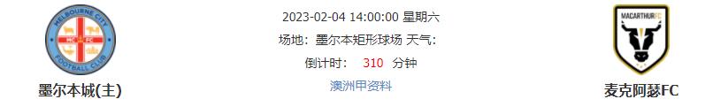 北京时间2023年02月05日14:00,澳洲甲迎来第15轮赛事,墨尔本城vs麦克阿瑟FC,双方实力悬殊,那么本场比赛会有悬念吗?让我们一起来看看吧。