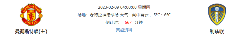 北京时间2月9日的凌晨04点00分,英超赛事的第8轮的一场补赛将会准点上演!——传统豪门曼彻斯特联将会坐镇老特拉福德球场迎来保级球队利兹联的挑战!刚被终结不败势头的利兹联能否重拾状态作客给红魔制造更多的麻烦?还是当前正值各项赛事四连胜的曼联能够借助主场优势延续连胜的步伐?下面将由Yoyo姐将为大家带来详细的赛事分析: