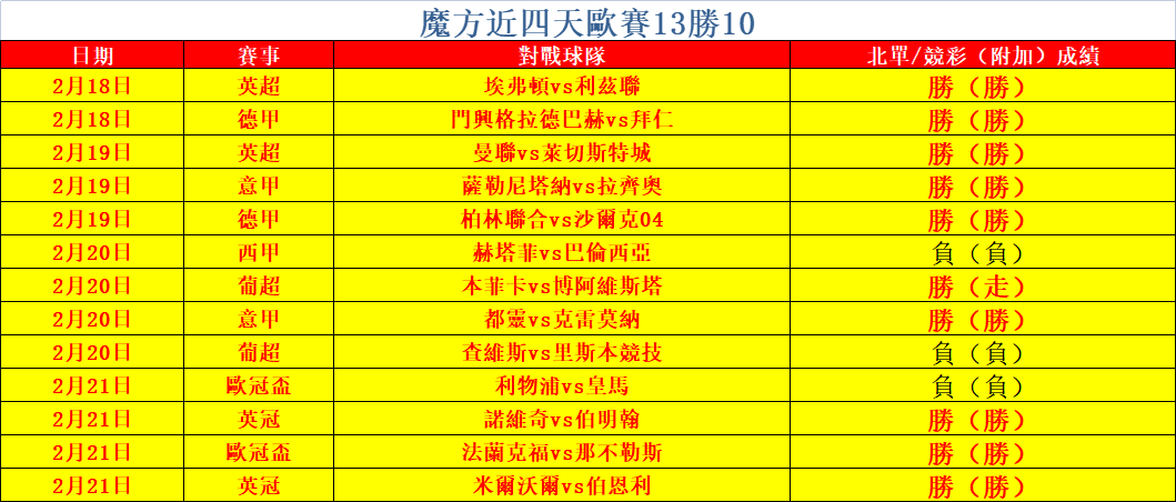 魔方昨日歐賽再次打出好成績,4場拿下3場!近四天歐賽打出13勝10,歐賽依舊保持得十分穩定。接下來魔方將會不斷努力務求精益求精!今日繼續對歐冠盃進行深研。