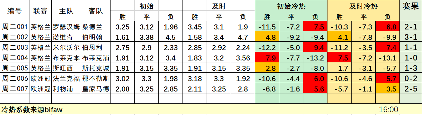 昨日冷热数据表现喜忧参半,取胜大热的桑德兰、伯恩利打出冷门方向,不过布莱克本、那不勒斯和皇马热门方向依旧打出,未能准确提示。