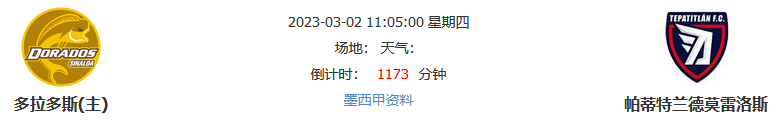 北京时间2023年03月02日11:05,墨西甲迎来第9轮赛事,多拉多斯主场迎战帕蒂特兰德莫.雷洛斯,多拉多斯近期联赛遭遇连败打击,士气低迷,此番主场迎战近期状态不俗的帕蒂特兰德莫.雷洛斯,多拉多斯会如何应对呢?