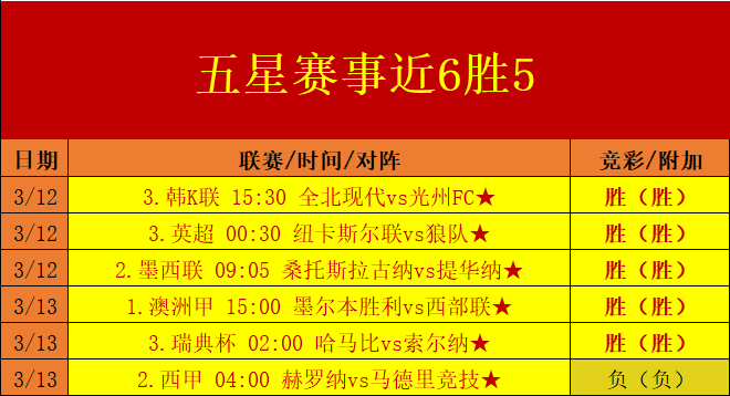 昨日晚场的欧赛板块虽然受到阻击,但是全天的整体表现中规中矩表现平稳,其中作为主要信心支撑的五星赛事更是持续交出精彩表现,近6场的五星赛事取得了5场胜利的增长表现,今晚欧赛板块以两场欧冠赛事作为信心支撑对本周的周中继续进行冲击!