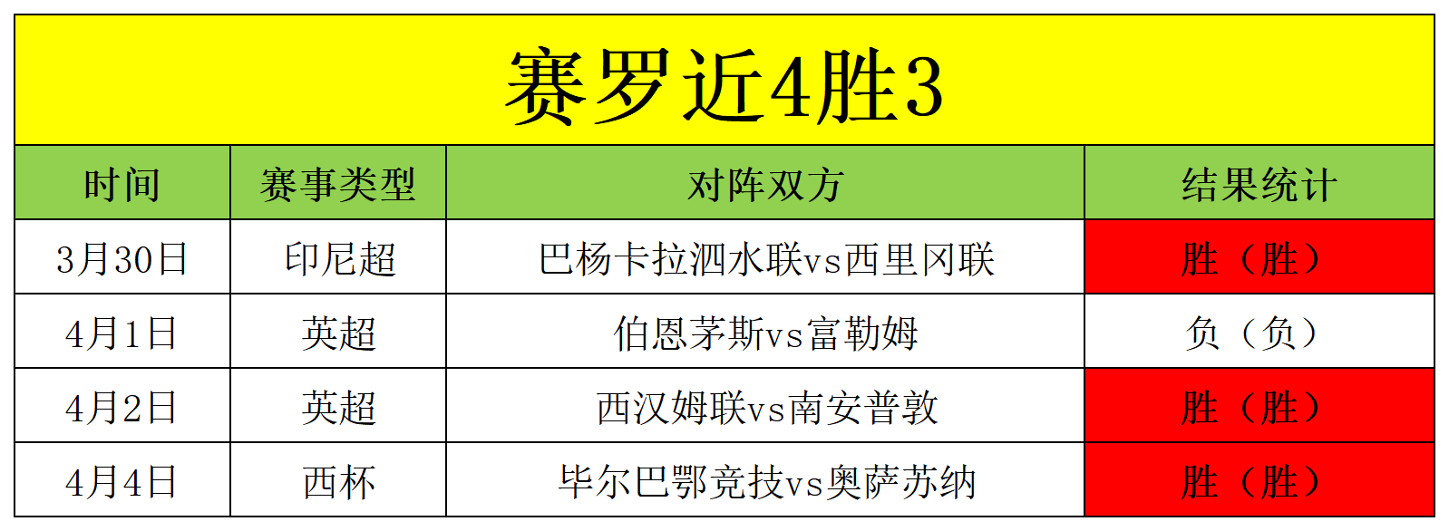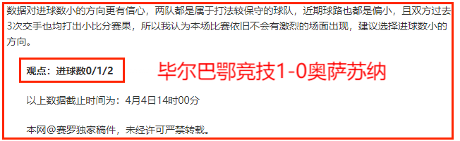 昨天的西杯再次拿下,毕尔巴鄂竞技1-0奥萨苏纳,笔者分析的进球数方向准确无误,近期4场赛事取得3场胜绩,目前2连胜,笔者状态逐渐恢复,今天乘胜追击。