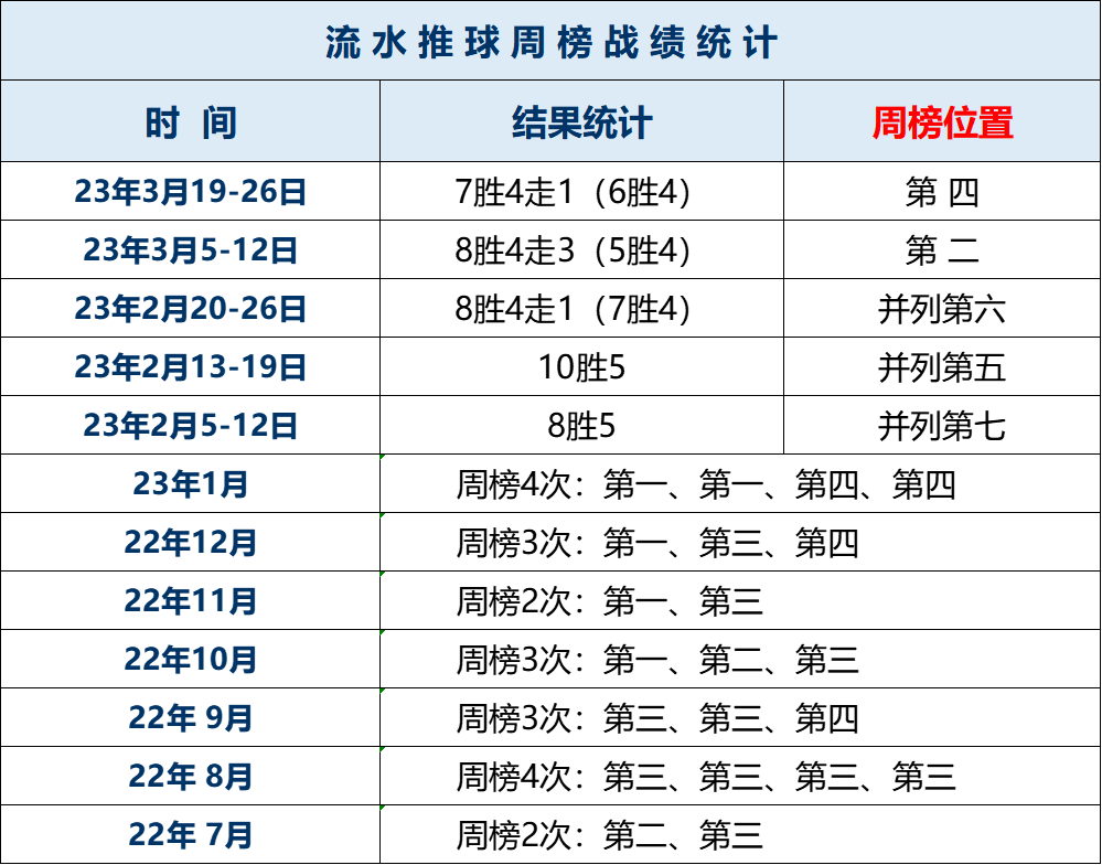22年7月18-9月18,连续8周均入列周榜前四,其中7次前三;