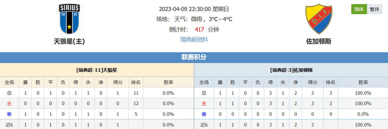 北京时间4月9日23:30,瑞典超2023赛季第二轮比赛,天狼星vs佐加顿斯,主队在首轮比赛遗憾未能取得胜利,客队则延续强势的发挥大胜对手,本场比赛胜利天平会倾向哪一方呢?让我们一起关注!
