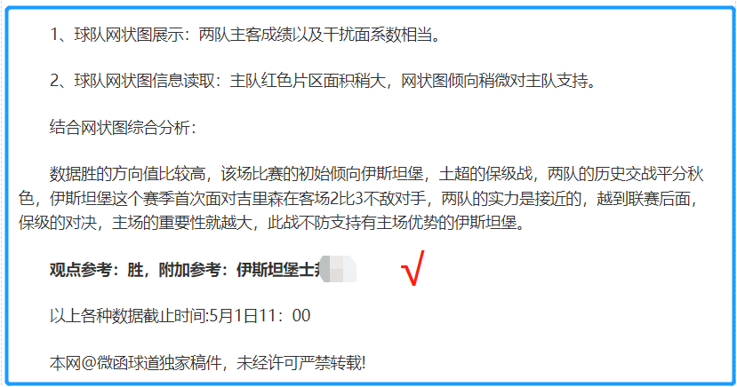 (统计数据的解读仅用于分析比赛用途,提升分析赛事效率,请理性看待计算数值和解读结果存在误差值。温馨提示:数据由三方作者提供,仅代表数据上传者个人数据分享,与本网站无关,用户请谨慎参考及请勿用于非法用途,否则一切后果由用户自行承担)