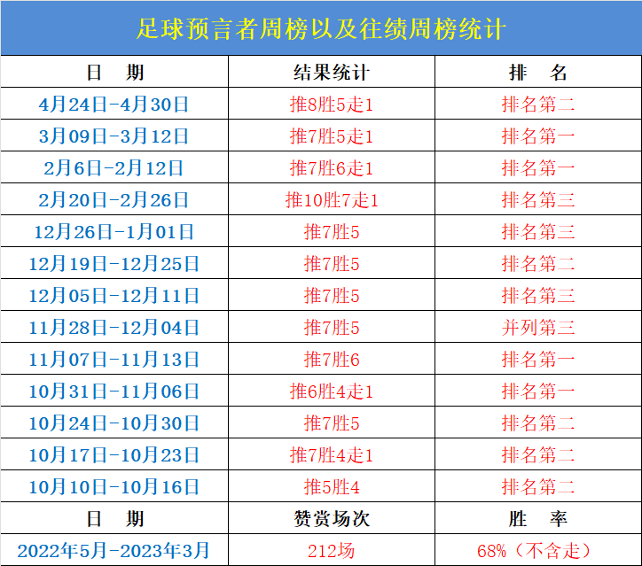 2、预言者曾连三周连续稳坐周榜榜首位置!!从去年10月份至今,笔者13次登上周榜的位置。长期而且稳定的发挥,不但是实力的体现,也是笔者对数据这方面有所沉淀才可以的!大家应该要有长期的计划,简单直接的方法就是开启包周业务,笔者必须会带领大家保持稳定的正向增长!