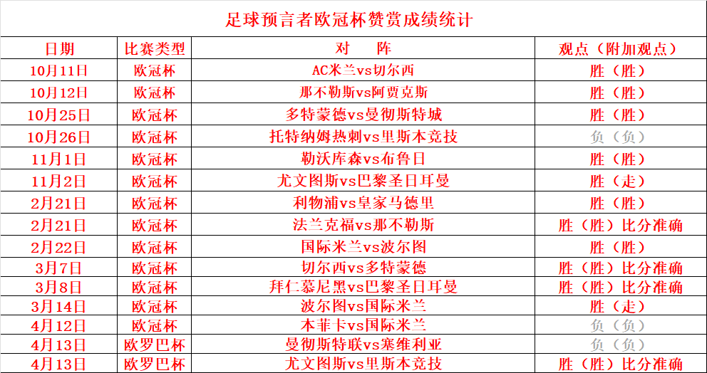 3、有小伙伴们建议笔者在送出比赛方向的同时,能否预测比赛结果,预测比赛结果是有相当的难度,往后的时间里如果是有信心的,笔者会附加上比赛结果,在这感谢大家一直以来的支持。