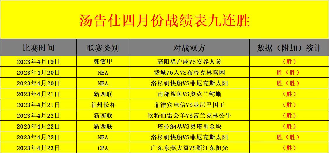 成绩回顾:作者在昨日一战WNBA拿下了胜利之后早场NBA再次拿下了胜利,近期取得了4胜3+两连胜的战绩,在四月份作者曾一举拿下了九连胜的成绩!2022年取下过辉煌的成就,2023年我们一起加油鸭!