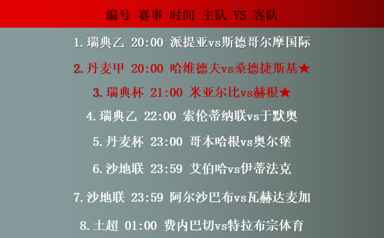 赛事前瞻:(标★赛事表示信心更佳)