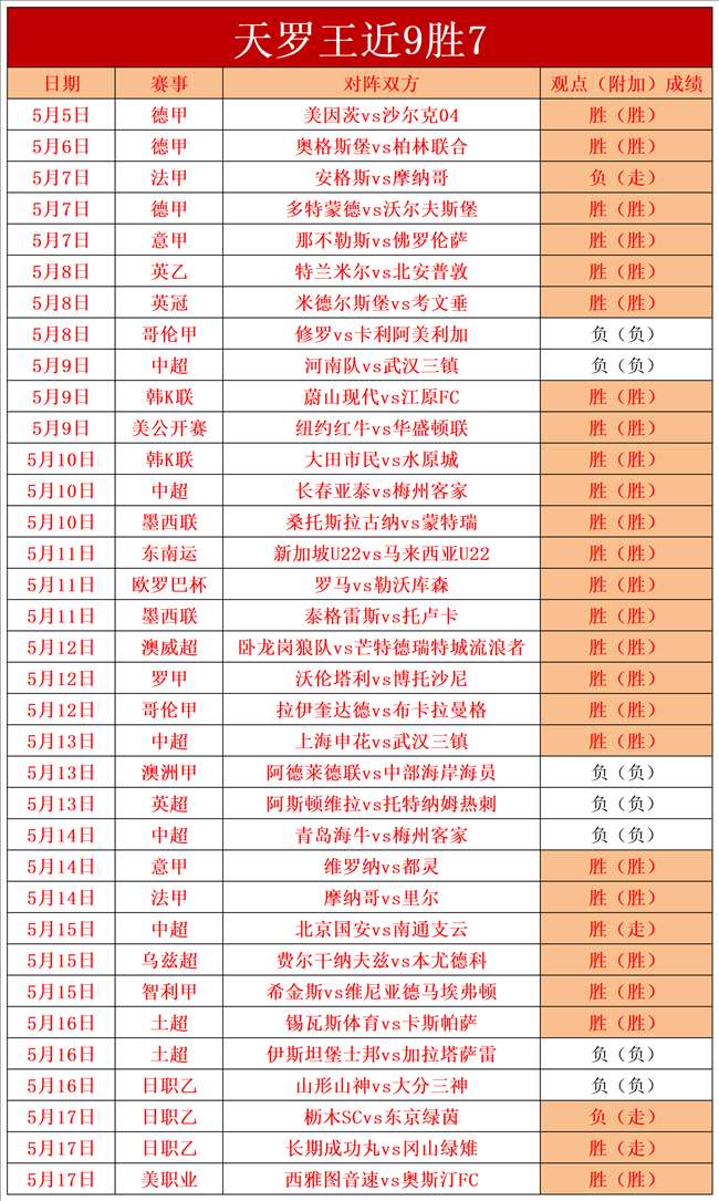 昨天的美职联打出,另外2场日职乙打平,近期成绩9胜7(走的不统计),笔者状态依旧,今天我们继续冲刺,继续向连胜迈进。