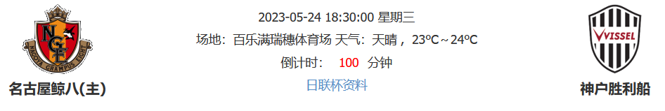 北京时间2023年5月24日18:30,日联杯2023赛季C组第5轮比赛,名古屋鲸八主场迎接神户胜利船的挑战,双方在日职联中均位于前列的位置,本次来到杯赛赛场理应实力接近的他们会给出怎样的对抗表现呢?让我们一起拭目以待!