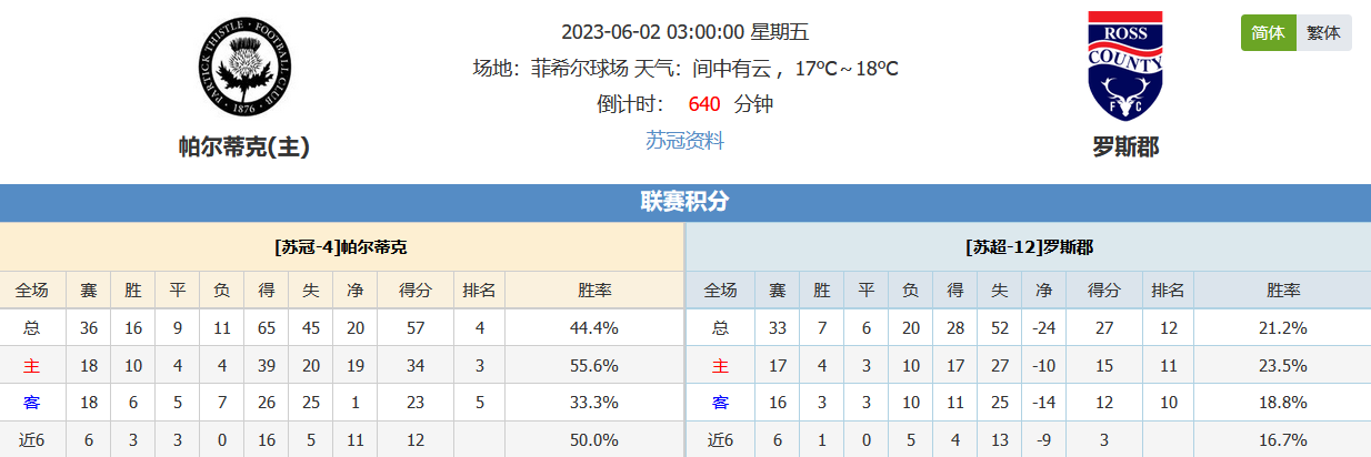 北京时间6月02日03:00,苏冠2022-2023赛季升级总决赛比赛,帕尔蒂克vs罗斯郡,主队在次级联赛中越战越勇状态正佳,客队则在降级的压力下难保全力发挥,本场比赛谁能笑到蕞后呢?让我们一起关注!