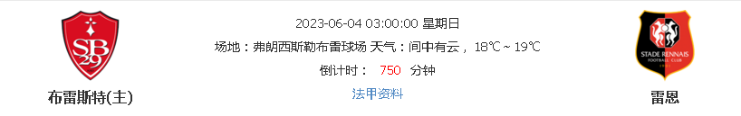 北京时间2023年6月4日03:00, 2022-2023 法国甲组联赛,布雷斯特vs雷恩,此役是法甲联赛第38轮的较量,主队布雷斯特上轮联赛客场2-1力克马赛,豪取联赛3连胜,此役坐镇主场弗朗西斯勒布雷球场迎战雷恩,两队如何对峙?下面由本作者为大家做详细阐述。