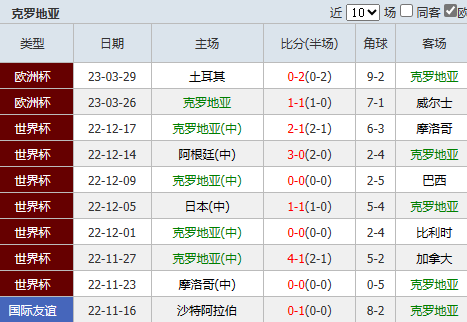 2、克罗地亚队异地作战能力一般,此前4个客场比赛下来,他们只是取胜1场。