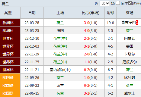 2、两队上一次的交锋当中,荷兰队曾在客场3-0击败对手。