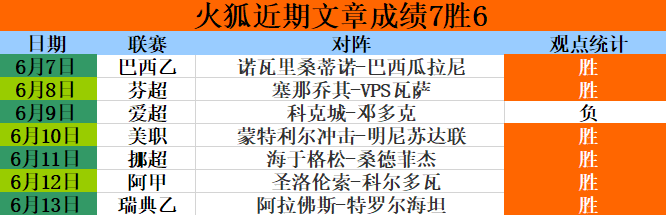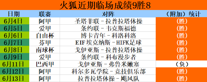昨天火狐临场送出的阿甲赛事,拉普拉塔体操主场1-0战胜飓风队,比赛顺利打出!赞赏近9胜8!同时文章送出的瑞典乙赛事,特罗尔海坦也客场4-0大胜阿拉佛斯,文章取得四连胜!近7场取胜6场!今天火狐精心挑选了一场欧国联赛事回馈给小伙伴们,争取带领亲们再创佳绩!