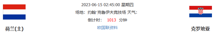 北京时间06月15日02点45分,2023欧国联A联赛半决赛的一场比赛,克罗地亚队将前往约翰·克鲁伊夫竞技场与荷兰队展开较量。与克罗地亚队相比,荷兰队在攻势上占据明显优势,而且本场他们又是主场作战,其发挥值得高看一线。