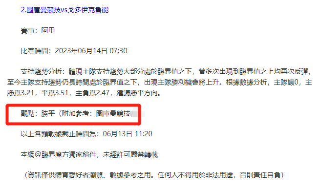 【解鎖內容為以上賽事支持趨勢預測圖展示,以及根據分析預測圖進行相對低機率方向觀點判斷。解鎖內容僅代表個人知識領域觀點,與本網站無關】