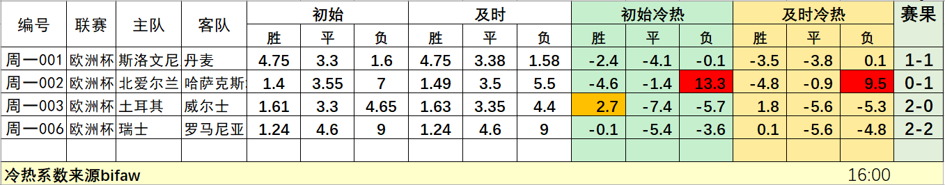 昨日冷热系数表现一般,取胜大热的哈萨克斯坦依旧胜出,未能准确提示。