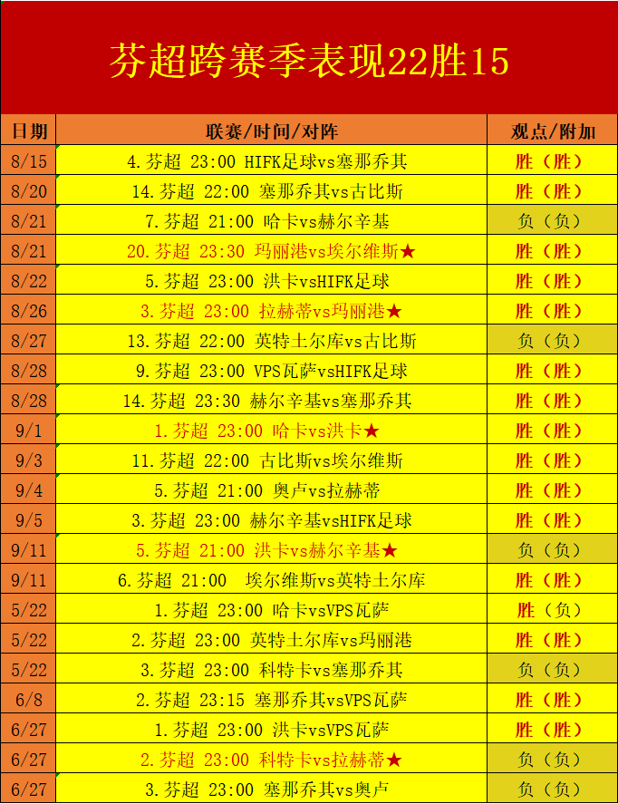芬超本赛季虽然少有接触,但是交出的4场比赛胜负各半相对稳定,跨赛季以来近22场比赛取得15场胜利观点分享,数据模块对于芬超联赛同样有着较为贴切的支撑基础,近期欧洲主流赛事处于跨赛季的歇息期,摘取昔日专精板块进行持续性的数据追踪,争取捕捉到昔日的优势轨道为本周的周末收官战作出支持!