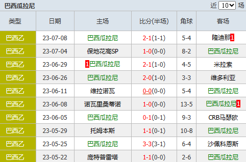 2、在上轮客场0-1负于保地花高SP后,巴西瓜拉尼已经连续7轮客场不胜。