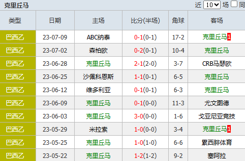 1、克里丘马这支球球队在巴西乙赛场上具备较强的实力,目前他们在联赛中10胜3平3负,以33分排名积分榜次席,球队的主客场实力较为均衡,这也是他们能够冲击巴西甲的仰仗所在。