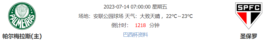 北京时间7月14日07:00,2023赛季巴西杯四分之一决赛次回合打响,帕尔梅拉斯主场迎战圣保罗。帕尔梅拉斯作为巴西甲豪门,在首回合客场失利的情况下,本场回到主场造势意图明显,这对球队来说十分不利。
