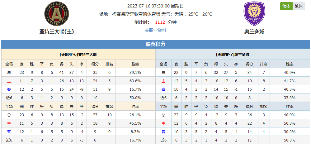 北京时间07月16日07:30,2023 美国职业大联盟联赛,亚特兰大联vs奥兰多城,两队之间排名差距不大,而且近期成绩都较为接近,今天比赛两队相遇到底谁能更胜一筹?