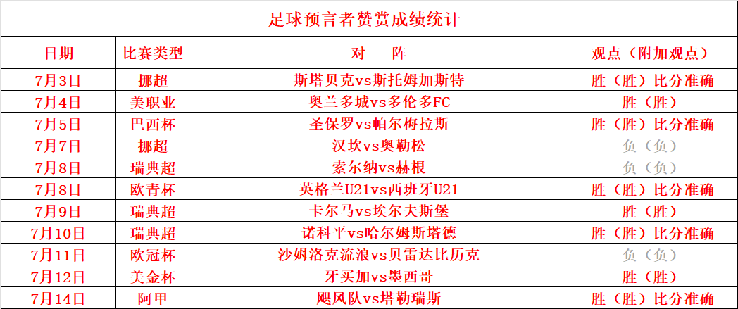 3、有小伙伴们建议笔者在送出比赛方向的同时,能否预测比赛结果,预测比赛结果是有相当的难度,往后的时间里如果是有信心的,笔者会附加上比赛结果,在这感谢大家一直以来的支持。