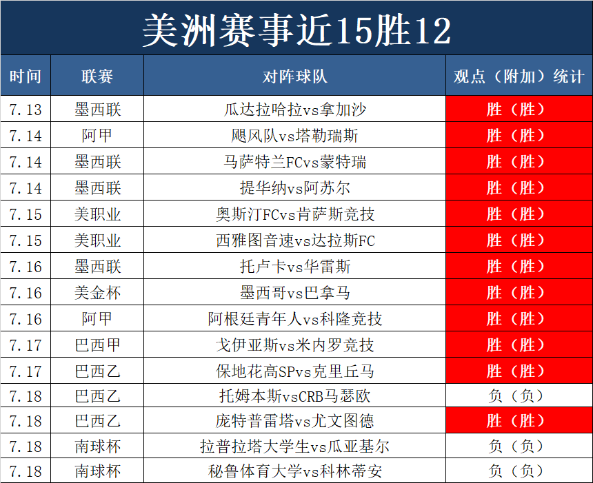 精彩分享:昨天的早场赛事稍有失手,早上的美洲赛事巴西乙尤文图德的入球数打出了,昨天稍有失手,今天会重点在美洲赛事上,美洲赛事近期观点15胜12。