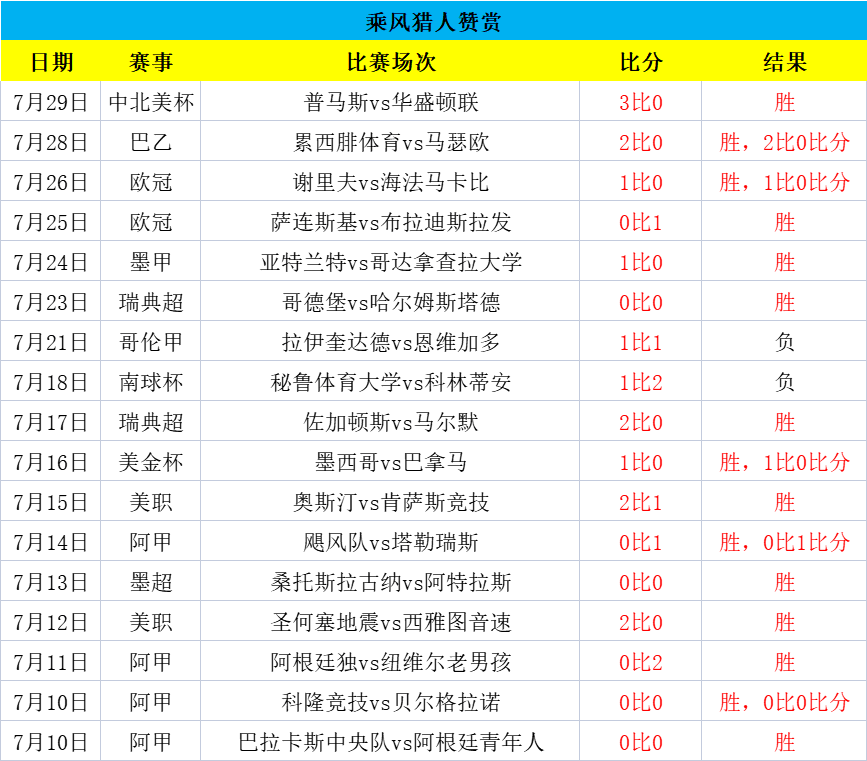 成绩长期稳定,状态火热!赞赏6连胜+17胜15(不含走),昨日赞赏普马斯3-0华盛顿联,主队方向成功全胜,火热连胜大捷,今日继续,力争大胜起飞!——今日重点参考乘胜追击!赞赏赛事,老铁们一起冲!