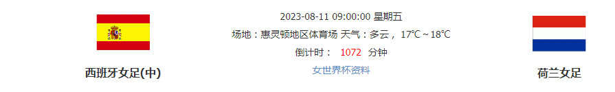 北京时间2023年8月11日09:00,女足世界杯淘汰赛,由博西班牙女足中立场对战荷兰女足,到底谁能拿下比赛胜利?数据对于两队有何倾向?
