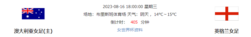 北京时间8月16日的傍晚18点00分,女足世界杯的半决赛即将继续展开激烈的争夺!——“新科欧洲杯冠军”英格兰女足将会对阵“东道主”澳大利亚女足!在进攻核心停赛的情况下,英格兰女足能否迎难而上?还是在今仗坐拥“天时地利与人和”的澳大利亚能够把握机会创造历史?