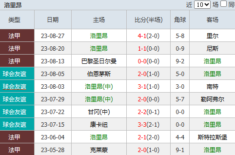 1、近年来洛里昂在法甲赛场上逐渐站稳了脚根,上赛季他们在联赛中取得了15胜10平13负的成绩,以55分的积分位列积分榜第10位。