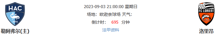 北京时间09月03日21点00分,23-24法甲联赛第4轮的一场比赛,洛里昂将前往欧逊奈球场与勒阿弗尔展开较量。升班马勒阿弗尔新赛季在法甲赛场上一胜难求,本轮面对还保持在不败当中的洛里昂,主队恐无力取胜。