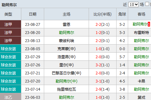 2、此前10次与洛里昂交锋,勒阿弗尔2胜3平5负,在实力上也不占优。
