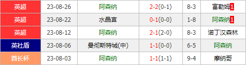 在新赛季少赛一轮的情况下,作为传统豪门的阿森纳目前以2胜1平的不败战绩暂列英超积分榜第6的位置,球队只要此役全取三分的话即有可能重返前三甲,因此战意方面自然毋庸置疑。而且在本赛季的坐镇酋长球场的两轮赛事,阿森纳取得1胜1平的战绩,而且场均2球的进攻火力表现尚可,不过累计丢3球的后防线状态则需要值得各位粉粉留意一下哟~