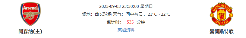 北京时间9月3日的晚上23点30分,英超联赛的第4轮赛事的末组对决即将上演一场看点十足的强强对话!——传统老牌豪门曼彻斯特联将会去到酋长球场挑战实力强劲的阿森纳!在上轮力挽狂澜完成逆转的红魔能否延续状态作客冲击连胜?还是在多位悍将复出后战力有所提升的阿森纳能够借助主场力擒对手?