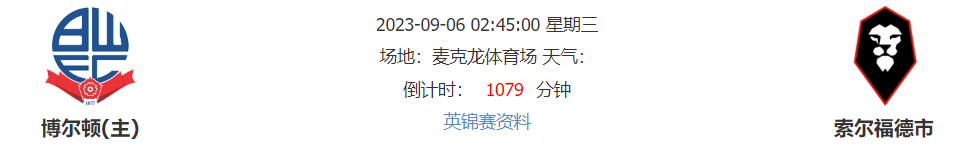 北京时间9月6日02:45,2023-24赛季英锦赛E组第1轮继续打响,博尔顿主场迎战索尔福德市。博尔顿在各方面均占据优势的情况下,本场坐镇主场初始力度一般,同时走势压低进行造势,这对球队来说十分不利。