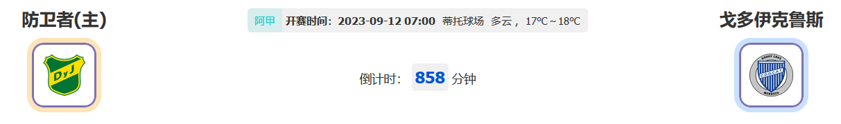 北京时间2023年9月12日07:00,阿甲联赛2023赛季第二阶段比赛第4轮赛事,防卫者vs戈多伊克鲁斯,主队近期双线作战体力受到影响,进入二阶段以来未能取得胜利,此番主场能否迎来一场酣畅淋漓的大胜?客队则是恰恰相反,专心联赛之下保持稳定的得分能力,本次作客能否再次全身而退保持不败战绩?让我们一起拭目以待!