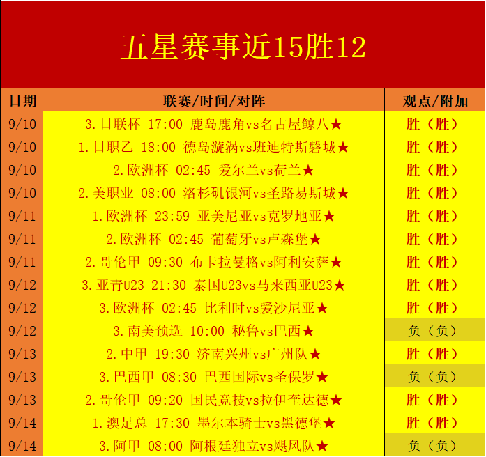 赛事前瞻:(标★赛事表示信心更佳)
