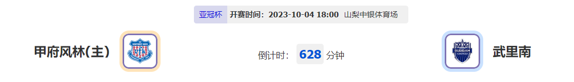 北京时间2023年10月04日 18时00分,亚冠杯小组赛H组第2轮的赛事,泰超霸主武里南犹如尖刀光芒四射,甲府风林主场势必拿下首胜?让我们一起期待!