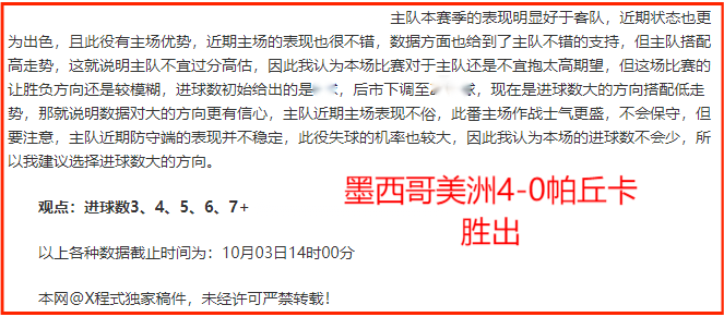 (温馨提示:观点回顾为已完场赛事的统计,并不能代表未来的观点预测结果走势,观点仅为其个人意见,与平.台无关。资讯仅供体育爱好者浏览,并不构成购.彩建议,任何人不得用于非法用途,请广大用户理性消费。)
