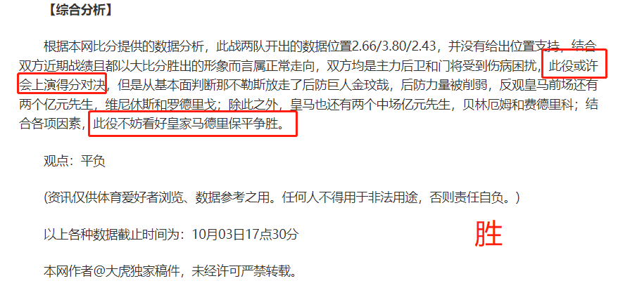 (温馨提示:观点回顾为已完场赛事的统计,并不能代表未来的观点预测结果走势,观点仅为其个人意见,与平.台无关。资讯仅供体育爱好者浏览,并不构成购.彩建议,任何人不得用于非法用途,请广大用户理性消费。)